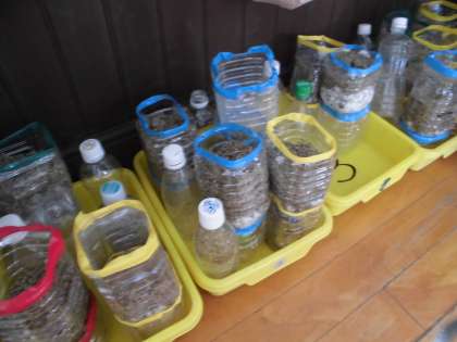 総合的な学習の時間にろ過装置を作っています。