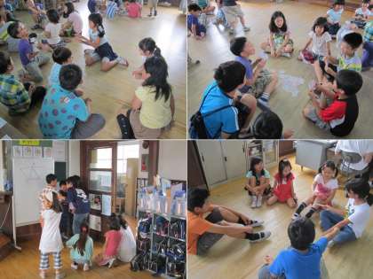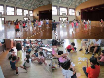 雨のため,運動場割り当てのグループは,室内遊びに変更して活動しました。