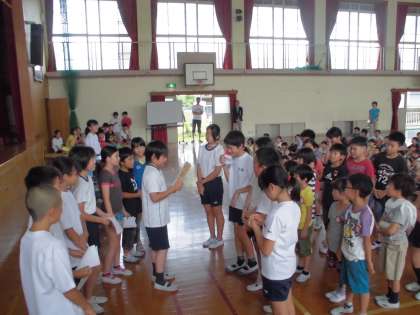 環境健康委員会が以前に企画・実行してくれたドッジボール大会の表彰をしてくれました。縦割りグループが協力して,仲良くなる計画をまた考えてくれることと思います。