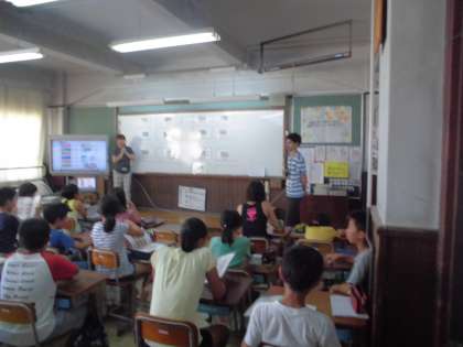 英語のクラスはいつも笑顔がいっぱいです。今日は,where is ○○?の表現などを学びました。「コンビニ」のアクセントが随分違いますね。