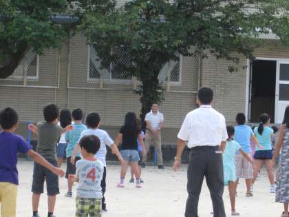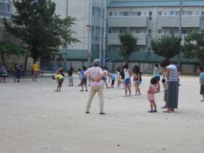 今日から3日間の予定で,夏休み明け前恒例のPTAラジオ体操がはじまりました。
