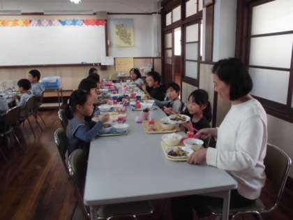ランチルームで牛丼の給食を食べた後,教室で栄養教諭の指導がありました。玉ねぎのお話では,みんなが食べている部分は葉になるところと聞いてびっくり!サツマイモの話でもおなかの中をきれいにする働きがあるときいてまたまたびっくりでした。