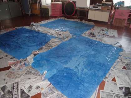 上京支部の育成学級のお友達が本校に集まり,「小さな巨匠展」に向けての作品作りをしました。大作の内容はヒミツですが,海の色がきれいに塗れました。次回は年が明けての,1月15日に続きの制作にかかります。