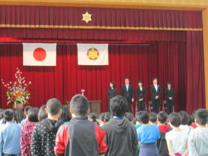 まずは,新しい教職員の方々をお迎えする着任式。月曜日からの学校生活が楽しみになるような素敵な出会いができました。