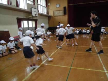 立ち幅跳びでは腕を思いっきり降ってジャンプ。反復横跳びは,リズムよく跳んでいました。上体起しは腹筋の力がいるので顔が真っ赤になります。あいにく,運動場はコンデションが悪ソフトボール投げは後日兄弟学年で実施します。持てる力を全て出し切れたらいいですね。