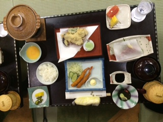 待ちに待った夕食の時間です。ごちそうがたくさんならんでいます。みんなそろっていただきます。