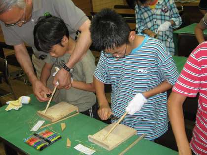 小刀を使ってのたけばし作りに,初めは,うまくできなくて困っていなしたが,途中からはなれてきた様子で,なかなかうまく作れていました。