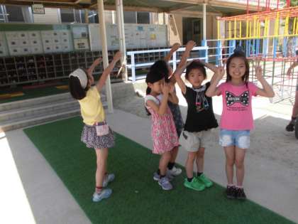 急に気温が上がってきました。それでも昼休みの運動場は元気に運動する子どもであふれていました。ミストシャワーの試運転をすると,なぜかほとんどの子が両手をあげます。ミストがあたる表面積を無意識のうちに広げるのでしょうか?大人気です。