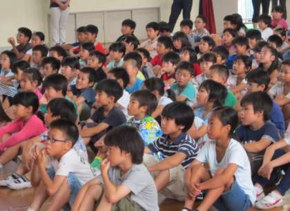 蒸し暑い中でしたが,みんな集中して話を聞くことができていました。