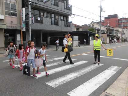 毎月1日は交通安全指導日で区内の主な交差点には地域の方々が,登校の安全を見守って下さいました。通勤・通学時間は慌てる人がいて,傍らを猛スピードで走る自転車もありました。暑さが厳しくなると,ついつい夜更かしをして,朝に慌てる人もいるようです。9時からは校門付近を地域の方々・PTAの方々が清掃にご来校いただきました。梅雨の雨で植物が成長するのは今の時期が一番早いように思います。 ありがとうございました。