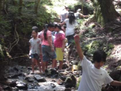 8月6日・7日は楽しみにしていた少年補導のサマーキャンプが百井で行われました。市内中心部は最高気温が37度を超える暑い日でしたが,百井は標高が高いので,さわやかな風が吹いていました。場内を流れる小川で,水遊びを楽しみました。その後のおやつはかき氷です。