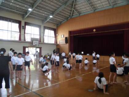 高学年の組体操は3人技の練習になってきました。暑い中ですが,集中して取組んでいます。真剣さがないと大きな事故につながりかねません。そんな事を考えながら,練習をすすめられるようになってきました。