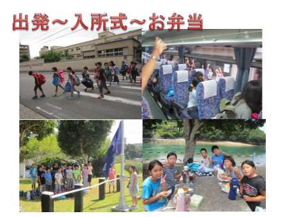 出発式のあと,バスの中では,みんなワクワクで歌を歌ったり,友だちと楽しそうに話したりと待ちきれない様子でした。そして,元気なまま入所式,お弁当タイム。