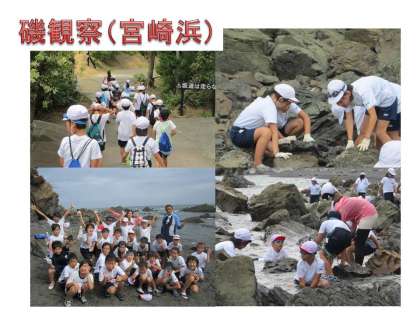 お弁当のあとは,今日のメインの一つ。磯観察です。天候が心配でしたが,暑すぎず,海風が気持ちよく,活動がしやすかったです。たくさんの海の生物を観察して,みんな大満足でした。