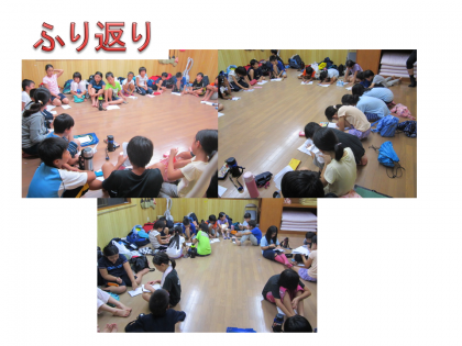 2日目も無事,すべての活動が終わりました。昨日よりも今日。子どもたちは,いろいろなことに仲間を意識しながら活動することができました。いよいよ明日は,最終日。今日より明日です。さらに成長した姿で,京都に帰りたいと思います。