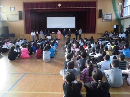 図書委員会からは1人1冊づつお勧めの本の紹介がありました。どれも面白そうなものばかりでした。また,人気の本ベスト3が発表されました。1位グレッグのダメ日記 2位ドラえもん科学ワールドロボットの世界 3位怪傑ゾロリ きょうふのカーレース だそうです。そして各学年で最も本を読んだ人へ表彰状が贈呈されました。たくさんの本を読んで,自分の世界を広げられるといいですね。
