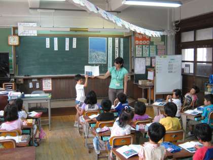 「サンゴの海の生き物たち」という教材を使っての授業だったのですが,子どもたちは,一人ひとりが がんばって考えたり,感想文を書いたりすることができていました。また,自分の意見を発表することができていました。