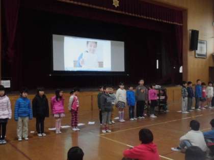 1年生が入学してからできるようになったことを一人ずつ発表しました。学習でも,生活面でも,友だちと仲良く過ごすことも,一歩ずつの成長が大きな進歩につながりました。他の学年の児童も自分の1年間の成長を確認してほしいものです。聞き手の感想も更にたくさんの子どもが言えるようになってほしいです。最後に,見に来ていただいたお家の方にごあいさつしました。