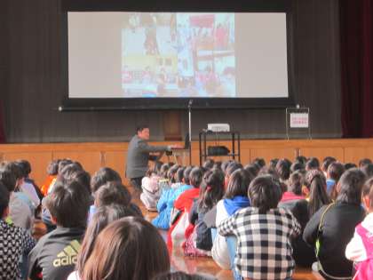 校長先生がこれまでの学校生活の様子の画像を見せながら,いろいろな人たちにお世話になっていることをお話してくださいました。日頃の教室でも同じです。友だちといっしょに学習してきたからこそ,いろいろな考え方が身についてきます。