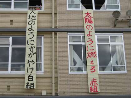 赤組のスローガンは「太陽のように燃えろ 赤組」