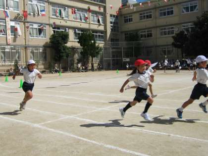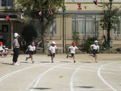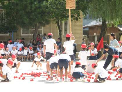 玉入れは かごが高いのでなかなか入りませんでした。でも頑張りました。