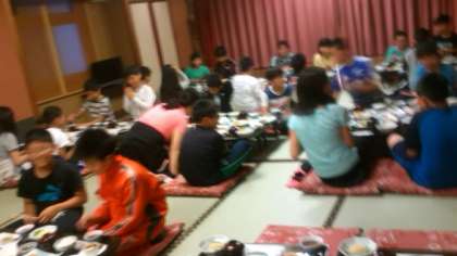 夕食の時間になりました。みんなもりもり食べました。これにデザートまで付きました。ごちそうさまでした。