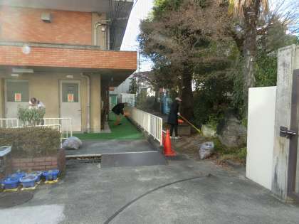 1月の正親清掃を行いました。寒い中、保護者や地域の方にご協力をいただきました。落ち葉は少なくなっていましたが、細かい隙間の雑草やマットの下の砂などをきれいに取り除いていただきました。ありがとうございました。