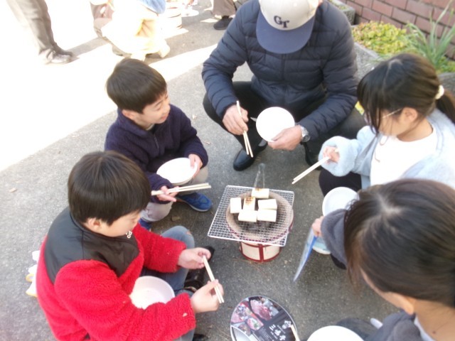 地域の方々に優しく教えて頂き、子どもたちは喜んでお餅を焼いて、食べていました。