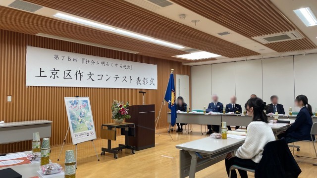 上京区役所において、”社会を明るくする運動”上京区作文コンテスト表彰式が行われました。