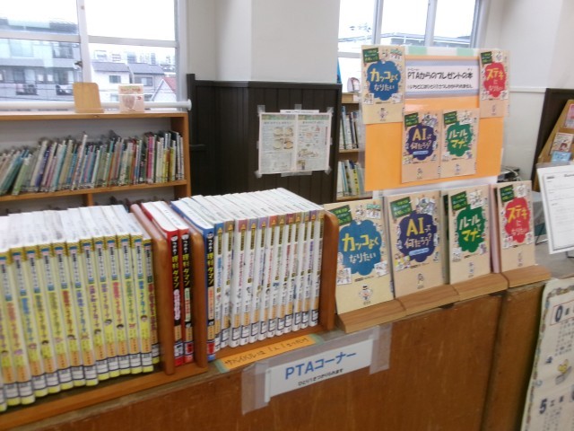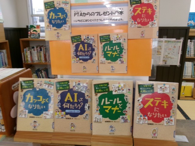 今年度も、PTAの皆さまより子どもたちのために新しい本と本棚をいただきました。子どもたちが本との出会いを通して、想像力や考える力、そして心の豊かさが育まれていくことを願っています。例年このような素晴らしい環境を整えていただき、改めて深く御礼申し上げます。今後も、子どもたちが本に親しみ、学びを楽しめる学校づくりを進めていこうと思います。