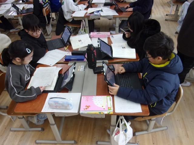 今日は、アンケートで分かったことをもとに、グループで発表の準備を進めました。