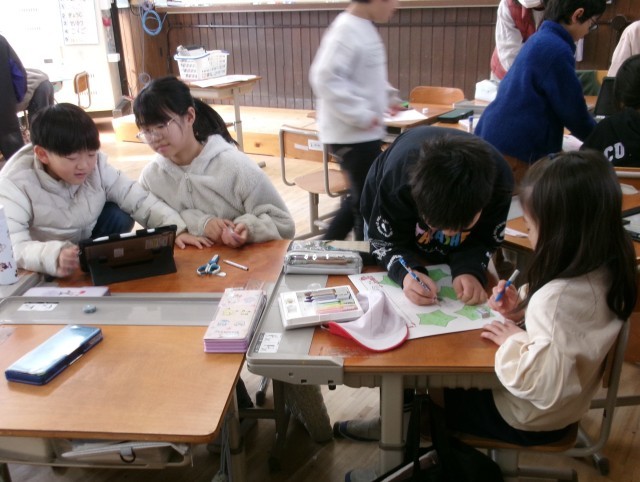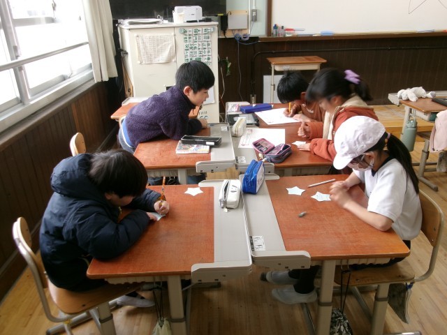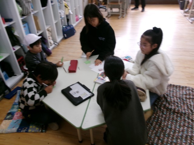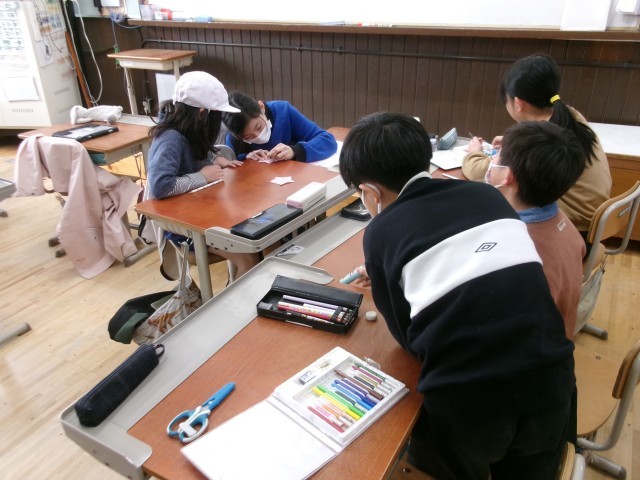 たてわりグループの1年生から5年生までの子どもたちが集まって、3月に行われる「6年生を送る会」の準備をしました。今日は5年生がみんなのリーダーで、みんなに説明をしたり、低学年を手伝ったりしていました。後1か月で卒業する6年生。これから各学年がそれそれにお祝いする準備を始めます。素敵な会になりそうです。