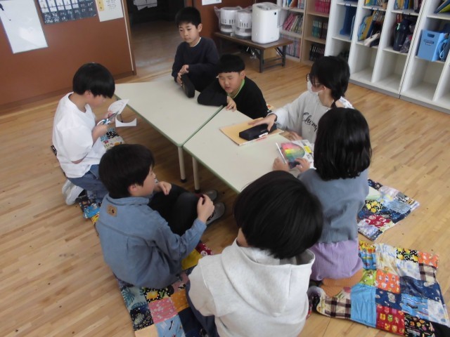 今日からたてわり活動が始まりました。といっても、27日(月)「1年生をむかえる会」の準備なので、1年生はまだ参加していません。2年生以上の子どもたちがそれぞれのグループで1年生へのプレゼントを作るのが今日の活動だからです。新しい友達と顔合せをしたところですが、和気あいあいとみんなで楽しく作業をしていました。「かわいいのができたよ」と報告してくれる児童もありました。これから1年間、たてわり活動を通して様々な経験をしながら互いのきずなを深めていきます。そして、6年生がリーダーとして成長する姿を楽しみにしています。