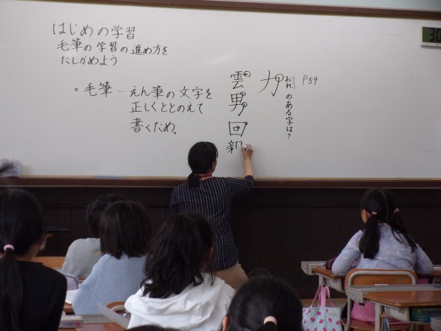 毛筆で書くときの姿勢や、筆を使う学習の進め方についても話を聞き、これからの学習への見通しをもつことができました。