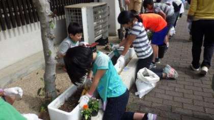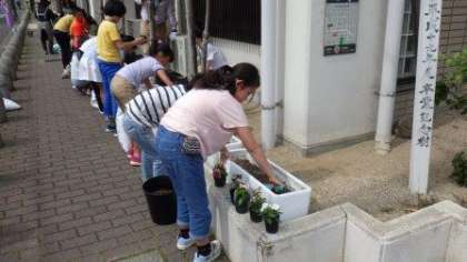 今日は花育活動の方に来ていただき,花の苗を植える活動をしました。