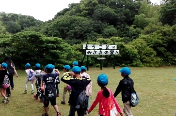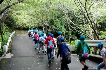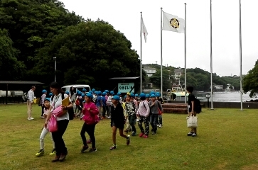 なかよし港から歩いて,昼食の場所へ向かっています。