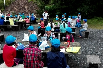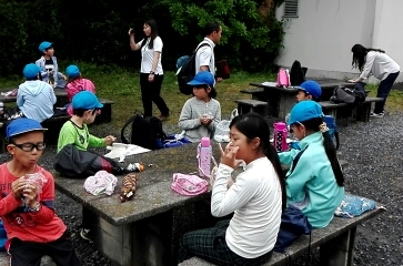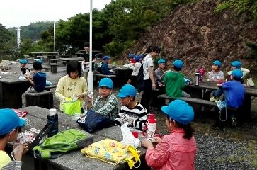 野外炊事場でおにぎり弁当をいただきました。朝早くに用意していただき,ありがとうございました。
