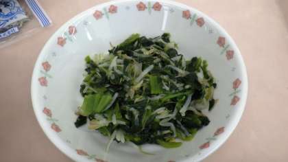 「ほうれん草ともやしのいためナムル」は,米酢を使ったさっぱりとしたナムルです。ごま油の良い香りを感じてほしいと思います。
