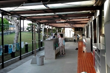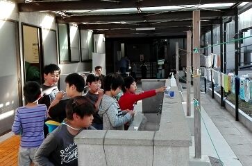 シーツをたたんだり,洗面や着がえなどをしたりしています。