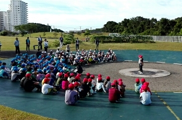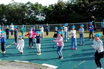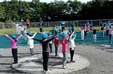 朝のつどいでは,お互いの学校を紹介したり,ラジオ体操をしたりしました。