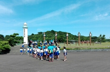 今日の午前中は宮崎浜で磯観察をします。集合写真を撮ってから宮崎浜へ歩いて移動します。