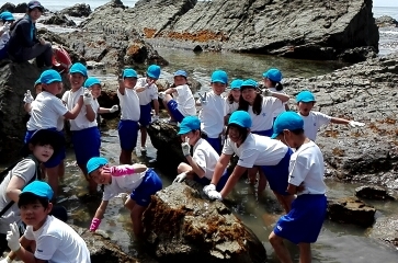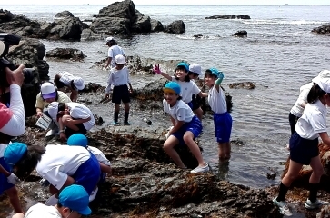 たくさんのヤドカリを見つけました。タコを見つけた児童もいます。