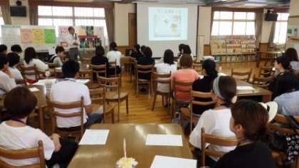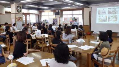 1年生の保護者の皆さまを対象に,給食試食会を行なっています。はじめに,京都市の学校給食や本校の食育などについての話をしました。