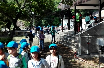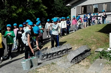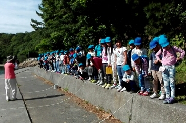 浦山ラリーの後,少し時間に余裕ができたので深谷水道に行きました。しかけ網にいる魚をとるために,みんなで網を引っ張りました。2匹魚をつかまえることができました。