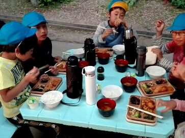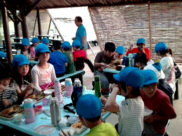 とてもうつくしい夕焼けを見ることができました。まもなくキャンプファイヤーです。