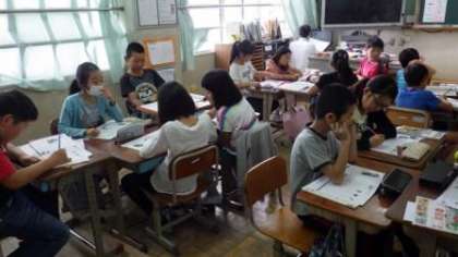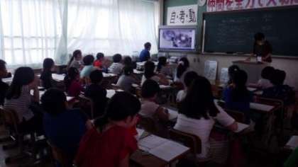 先週金曜日に行なった調理実習のふり返りをしています。映像教材も使って,「ゆでる」という調理についてふり返りました。