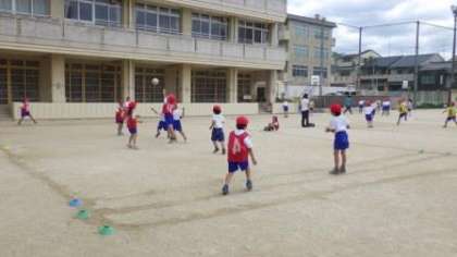 エンドボールのルールにも慣れてきたようです。楽しそうにゲームをしています。
