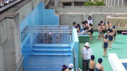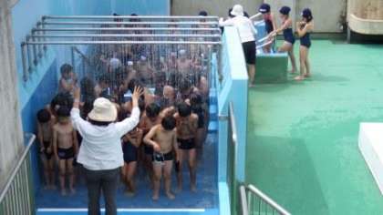 1・2時間目に水慣れの学習をしました。準備運動・シャワーの後は,プールでの約束を確認しながら活動しています。