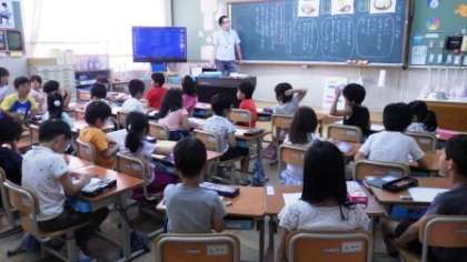 4年生は算数で小数の学習をしています。1年生は道徳でお話を聞いて,考えています。