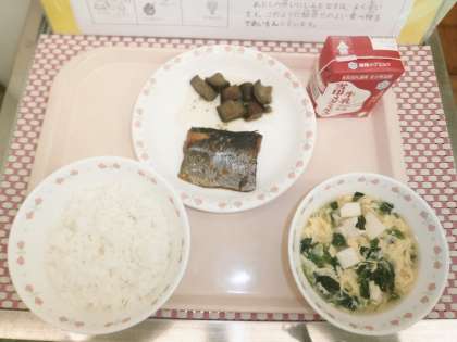 2年生の教室では,朝から「にしんなすだ。やった!」と喜んでいる声もありました。にしんが苦手な児童もいるようです。しかし,まわりのお友だちがおいしそうに食べている姿を見て,がんばって食べていました。